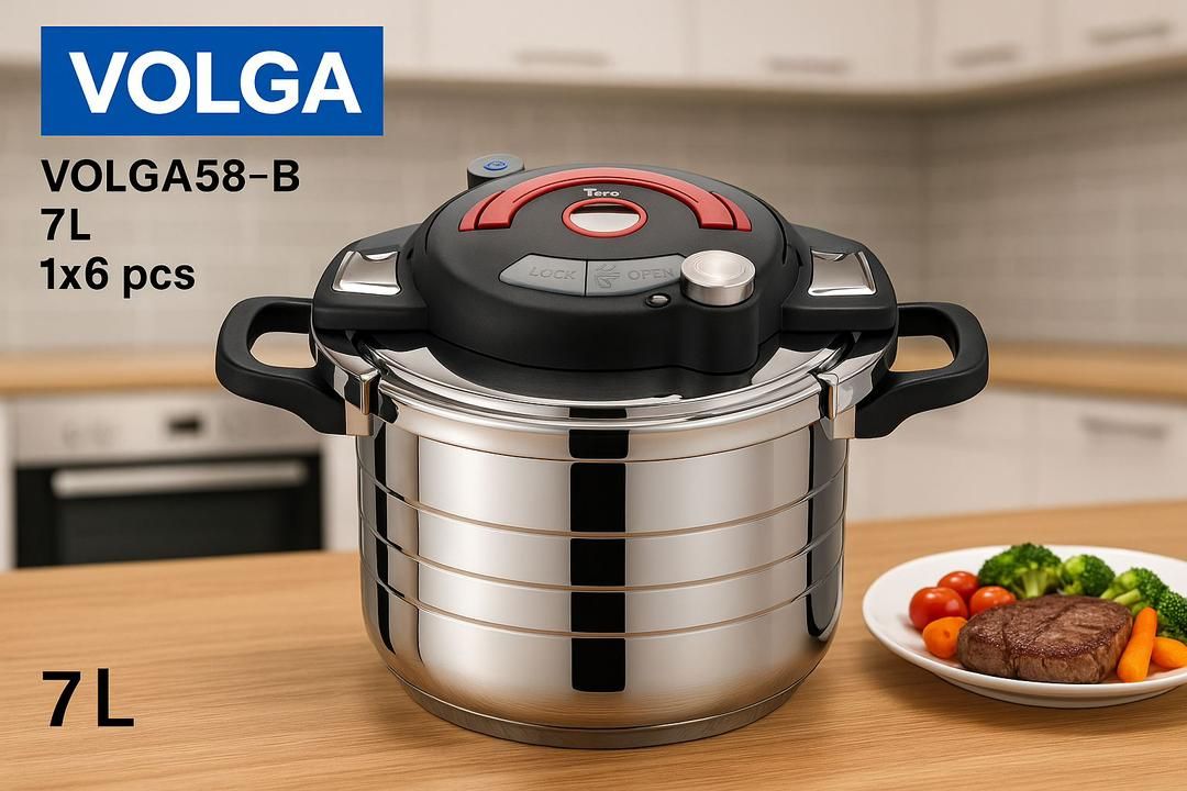 زودپز 2 دسته رو گازی اصل VOLGA دارای درب پیرکس و توری بخارپز